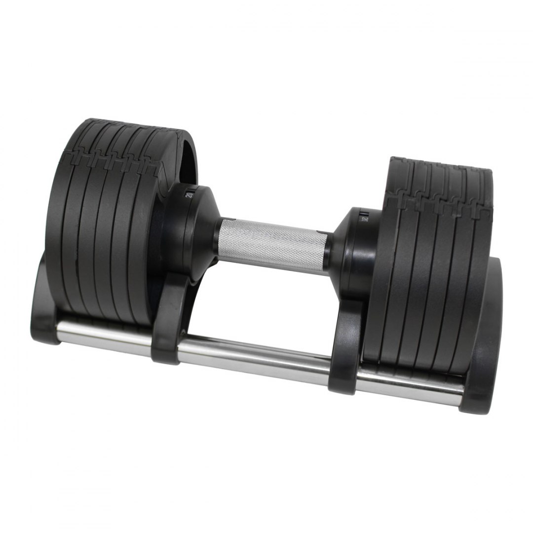 Sztanga MASTER Spin zastępuje kilka zestawów ciężarów, oszczędzając cenne miejsce na siłowni. Sztanga ma elegancki design i będzie wspaniałym dodatkiem do każdej domowej siłowni. Zawsze podnosisz tylko potrzebny ciężar, bez zbędnych przedłużek i nakrętek na osi.Sztanga MASTER Spin to wysokiej jakości produkt zaprojektowany z myślą o jak najdłuższym okresie użytkowania. Będziesz mógł śledzić swoje codzienne postępy w treningu ze stopniowym wzrostem obciążenia na przestrzeni lat. Obciążenie jest w pełni regulowane od 2,5 do 20 kg, poziom obciążenia – wybierasz żądaną wagę po prostu obracając rączką sztangi.Parametry: