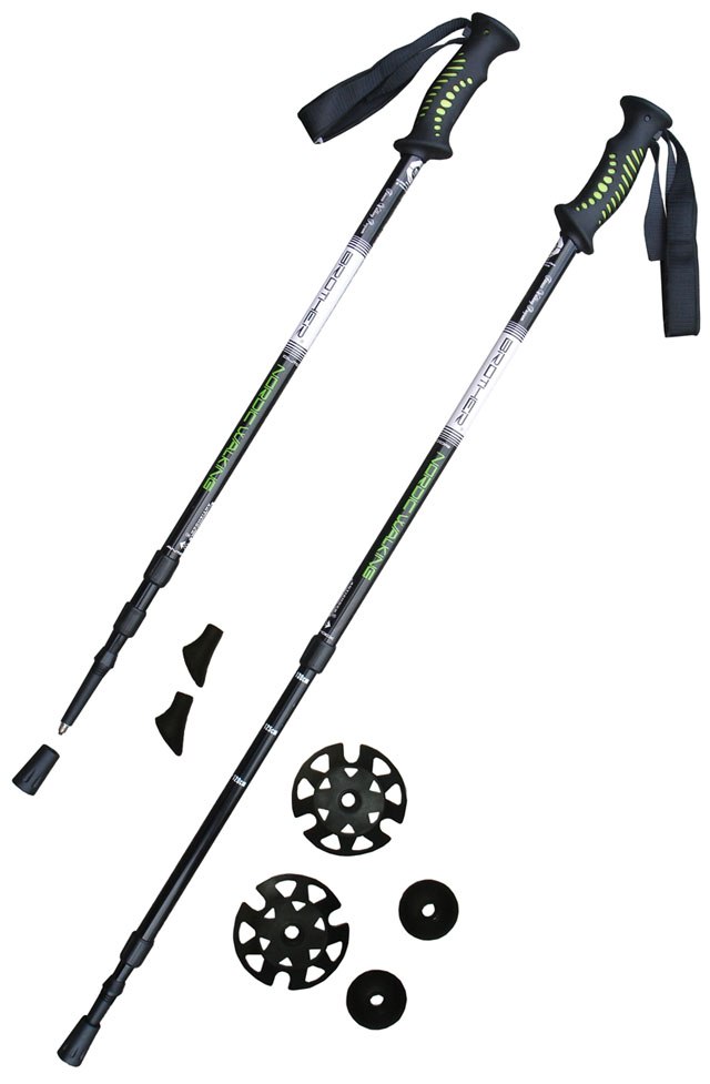 - W zestawie: dwa kije, wymienne pierścienie, gumowe końcówki.