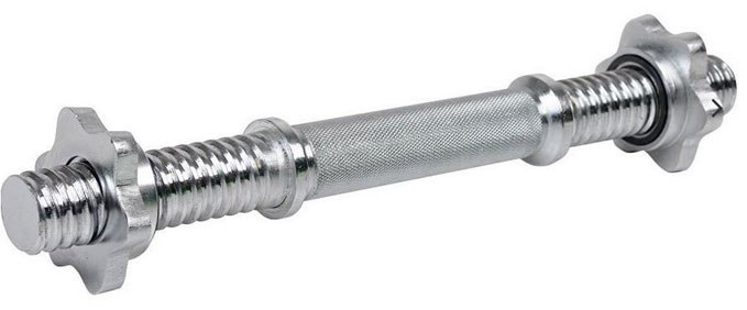 Solidny krótki gryf do hantli 38 cm o średnicy 30 mm. Wytrzymały, odporny na zniszczenia. Uchwyt radełkowany, antypoślizgowy, dzięki czemu nie wyślizguje się z rąk podczas ćwiczeń. Montowanie obciążenia za pomocą zacisków śrubowych, które bardzo dobrze utrzymują ciężary na miejscu, dbając o bezpieczeństwo i komfort użytkowania.