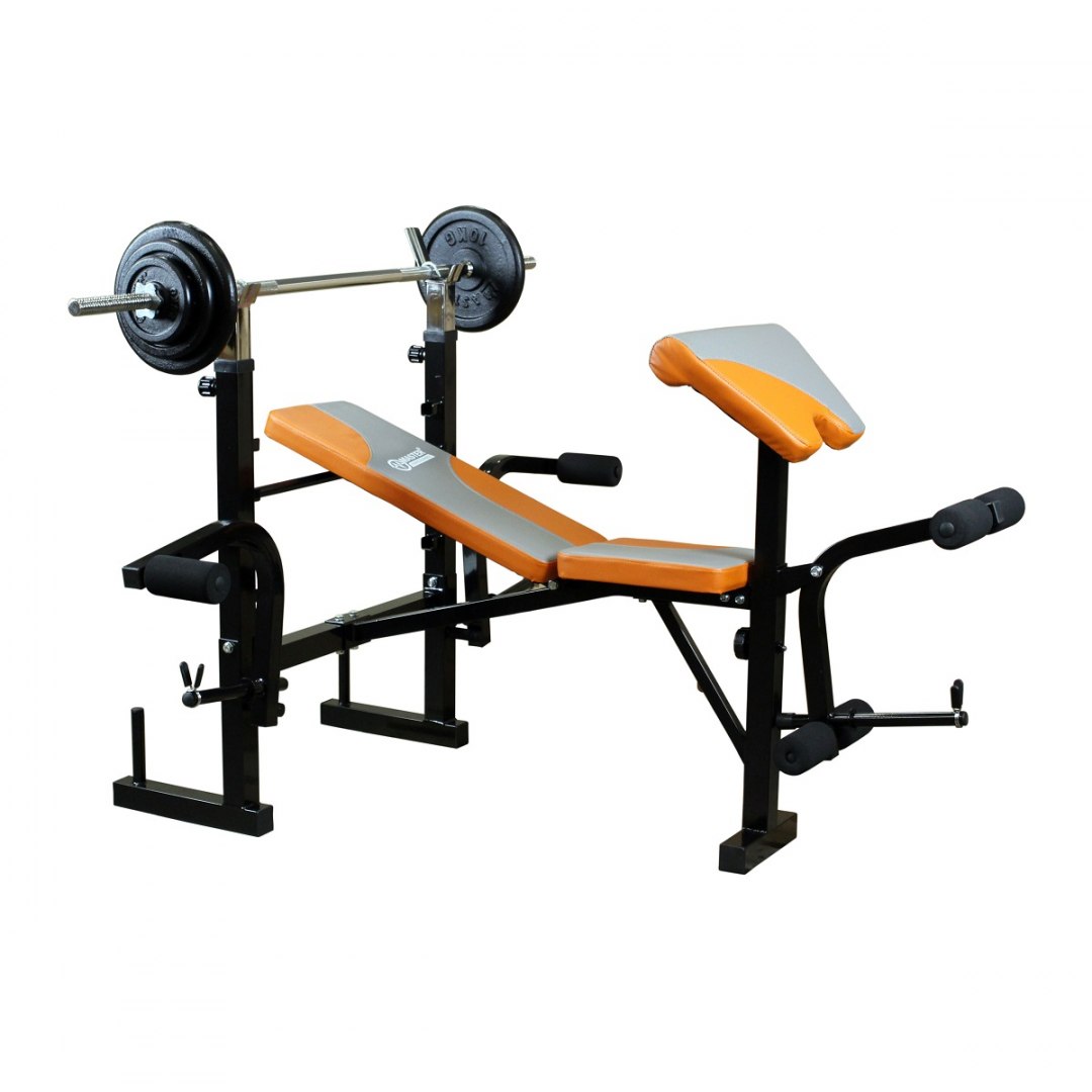 Ławka posiada stojak do ćwiczeń z dużą sztangą. Umożliwi również ćwiczenie bicepsów, robienie rozpiętek i ćwiczenie nóg.