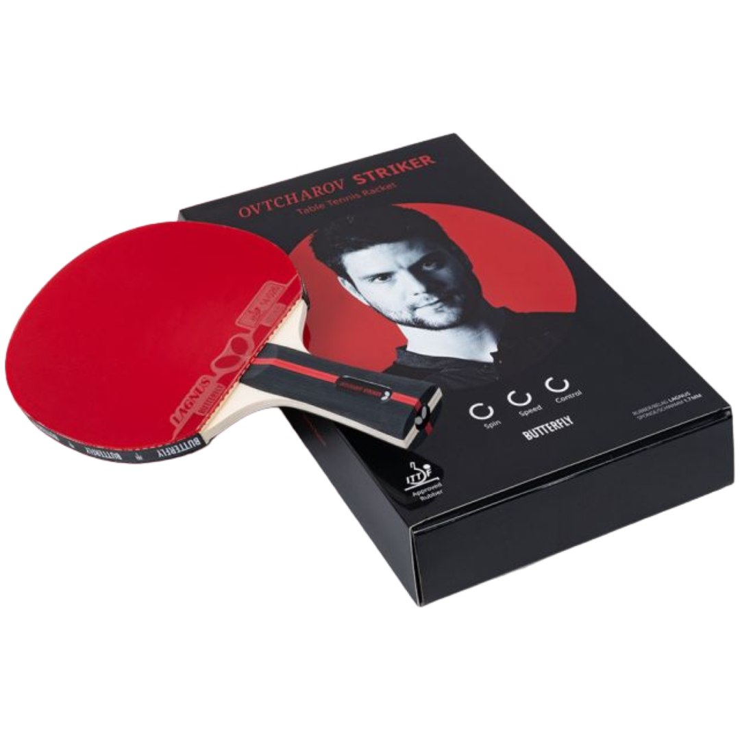 Rakietka Butterfly Ovtcharov Striker to ofensywna rakieta stworzona dla ambitnych sportowców z praktycznym doświadczeniem w tenisie stołowym. Gumy Lagnus (grubość gąbki 1,7 mm), zatwierdzone przez ITTF do zawodów, umożliwiają szybkie i precyzyjne uderzenia końcowe.