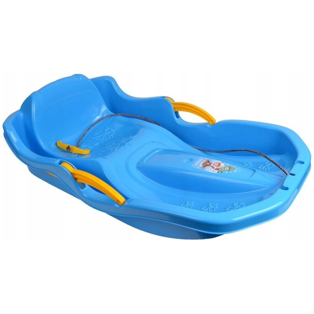 Wygodne sanki z siedziskiem i dwoma ręcznymi hamulcami umożliwiającymi kontrolę kierunku jazdy, precyzyjne wykonanie gwarantuje bezpieczeństwo i świetną zabawę na śniegu.