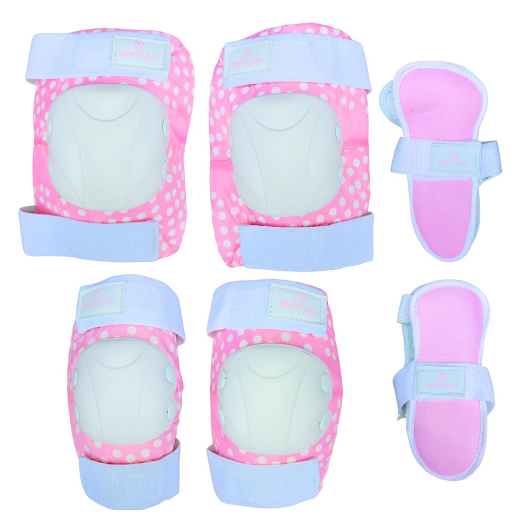 Zestaw Ochraniaczy Spartan Street Fun składa się z 3 podwójnych elementów na kolana, łokcie i dłonie. Zapewnia odpowiednią ochronę newralgicznych miejsc przy upadku podczas jazdy na rowerze, rolkach, wrotkach, deskorolce, łyżwach czy hulajnodze. Są lekkie, mają anatomiczne kształty nie krępujące ruchów oraz zapinanie na rzep, dzięki czemu nie zsuwają się podczas użytkowania i można idealnie dopasować je do swoich potrzeb. Kolorystyka oraz dziewczęcy wygląd przypadną do gustu niejednej skaterce.